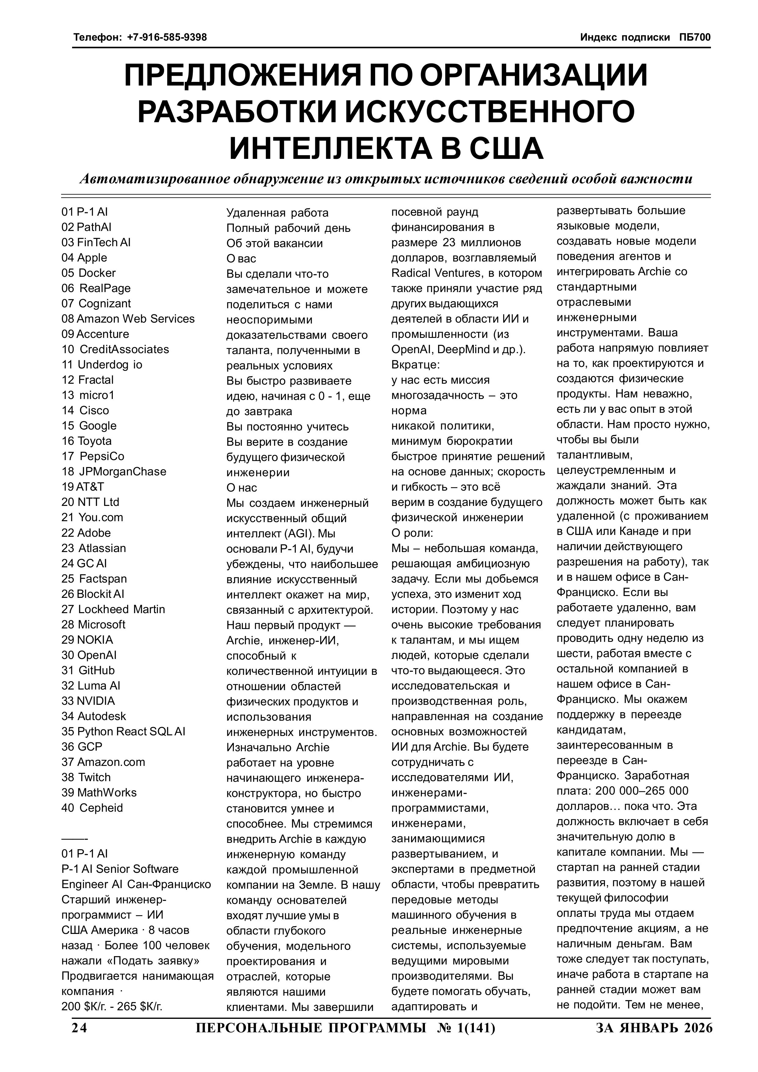 Журнал "Персональные программы" на флешке 2026 год, N 1, стр.024 ПРЕДЛОЖЕНИЯ ПО ОРГАНИЗАЦИИ РАЗРАБОТКИ ИСКУССТВЕННОГО ИНТЕЛЛЕКТА В США Автоматизированное обнаружение из открытых источников сведений особой важности