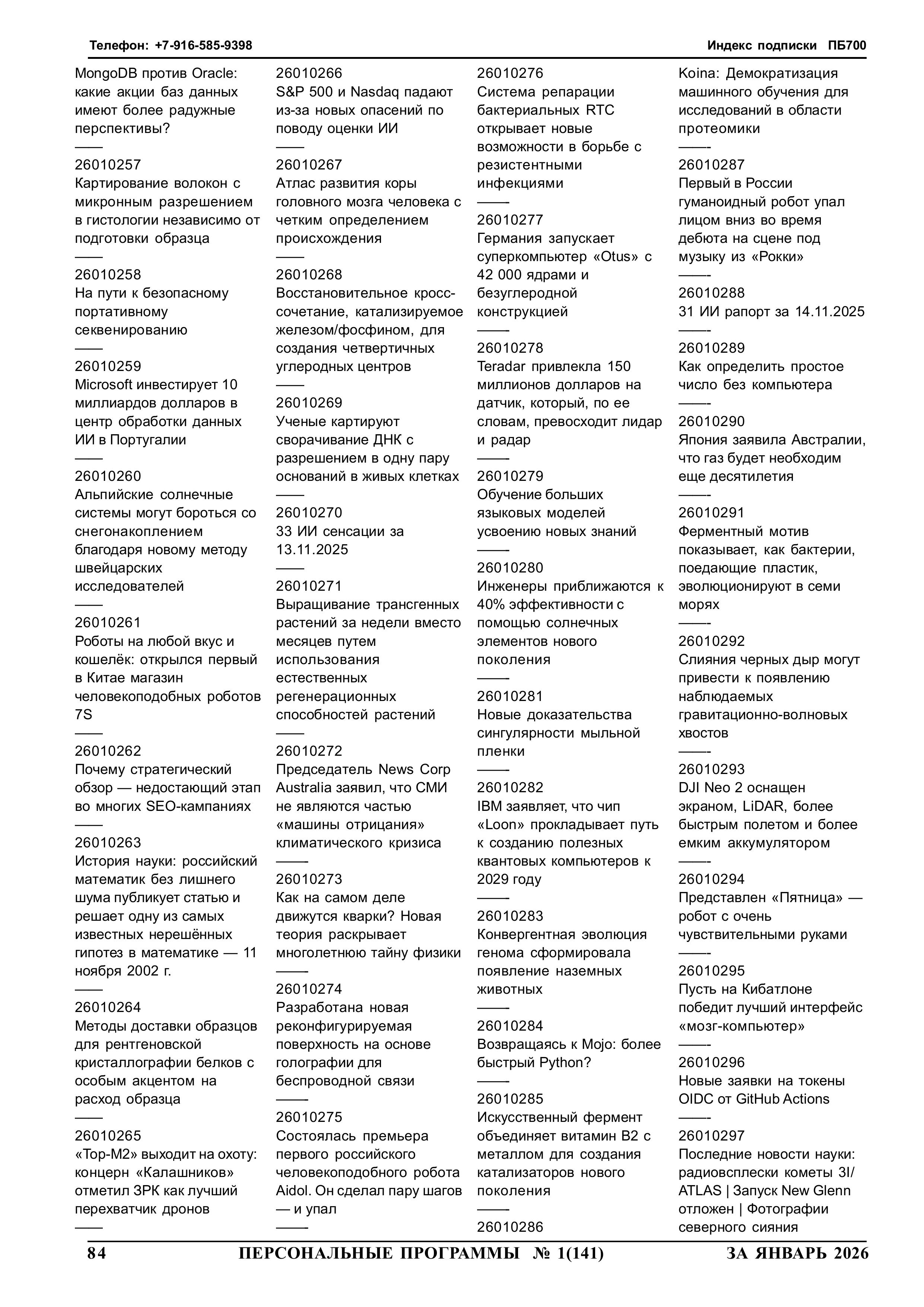 261084 yyNppp [ггNстр] Еженедельный журнал Персональные программы. Компьютер на флешке 2025-11-19