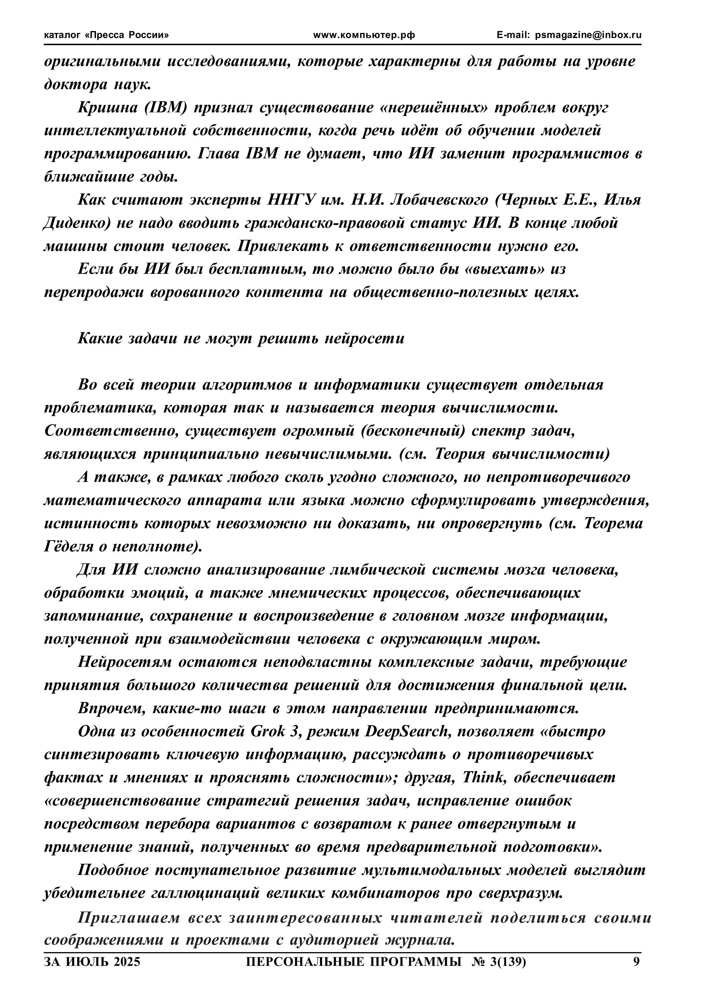 Искусственный Интеллект и философские вопросы 2025 год N 3 стр.009