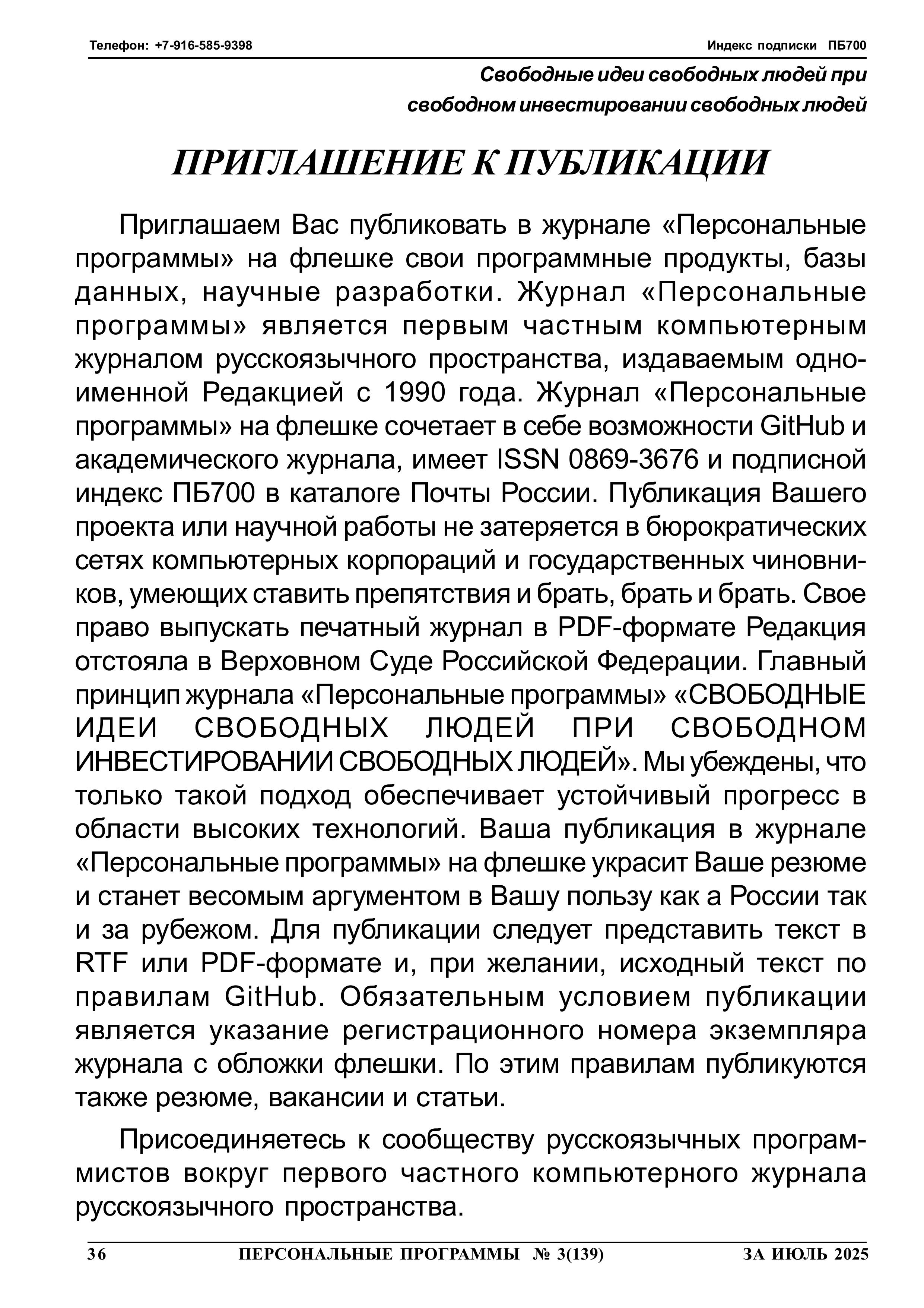 253036 yyNppp [ггNстр] Журнал Персональные программы на флешке 2025-07-30