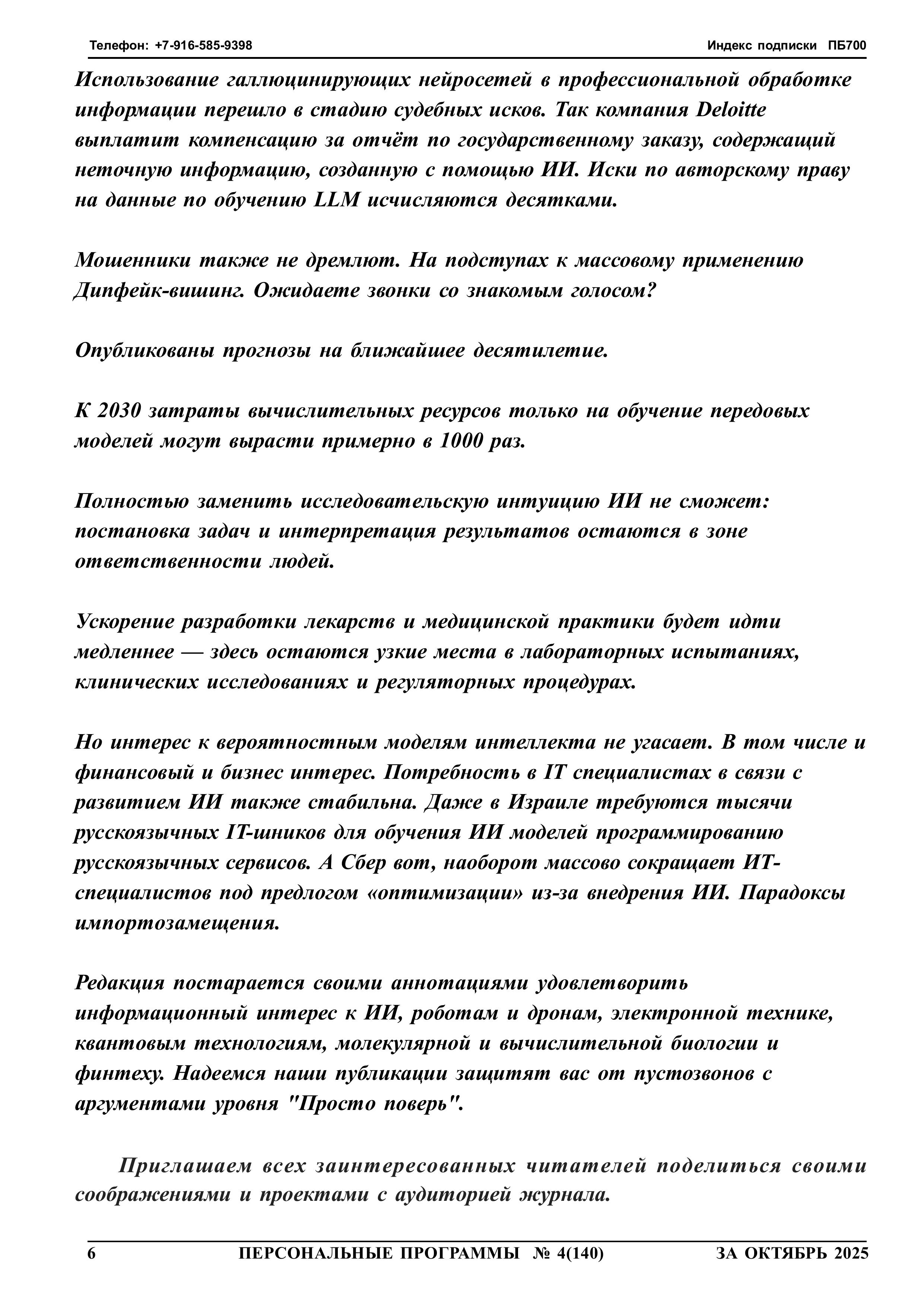 Журнал Персональные программы на флешке 2025 год №4 стр.006 Искусственный интеллект и философские вопросы