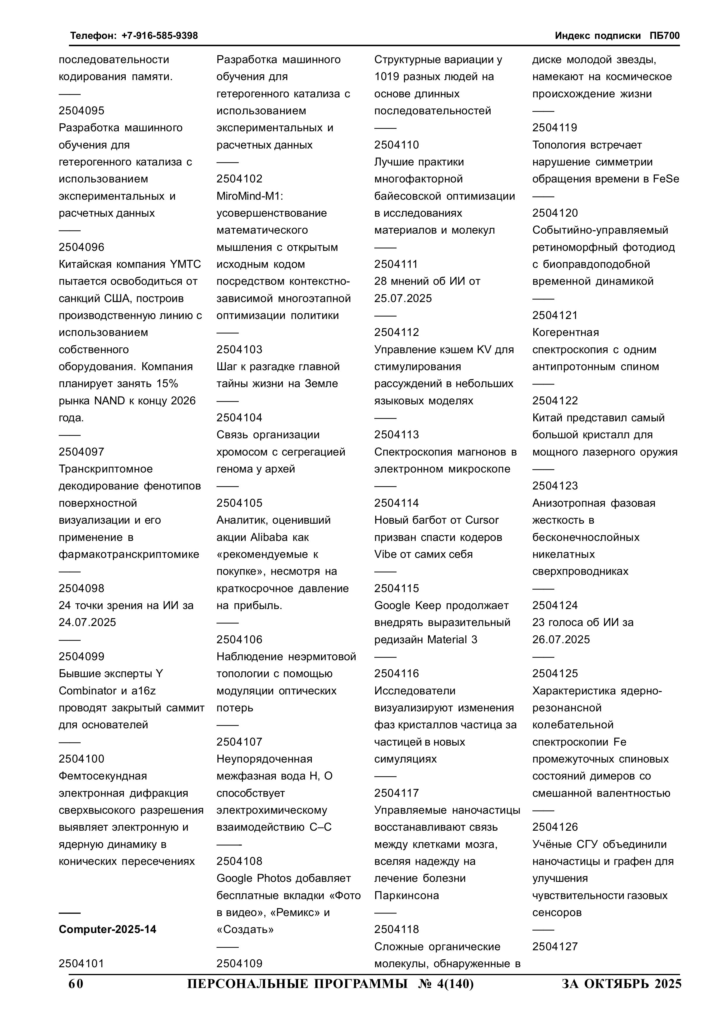 254060 yyNppp [ггNстр] Еженедельный журнал Персональные программы. Компьютер на флешке 2025-07-23