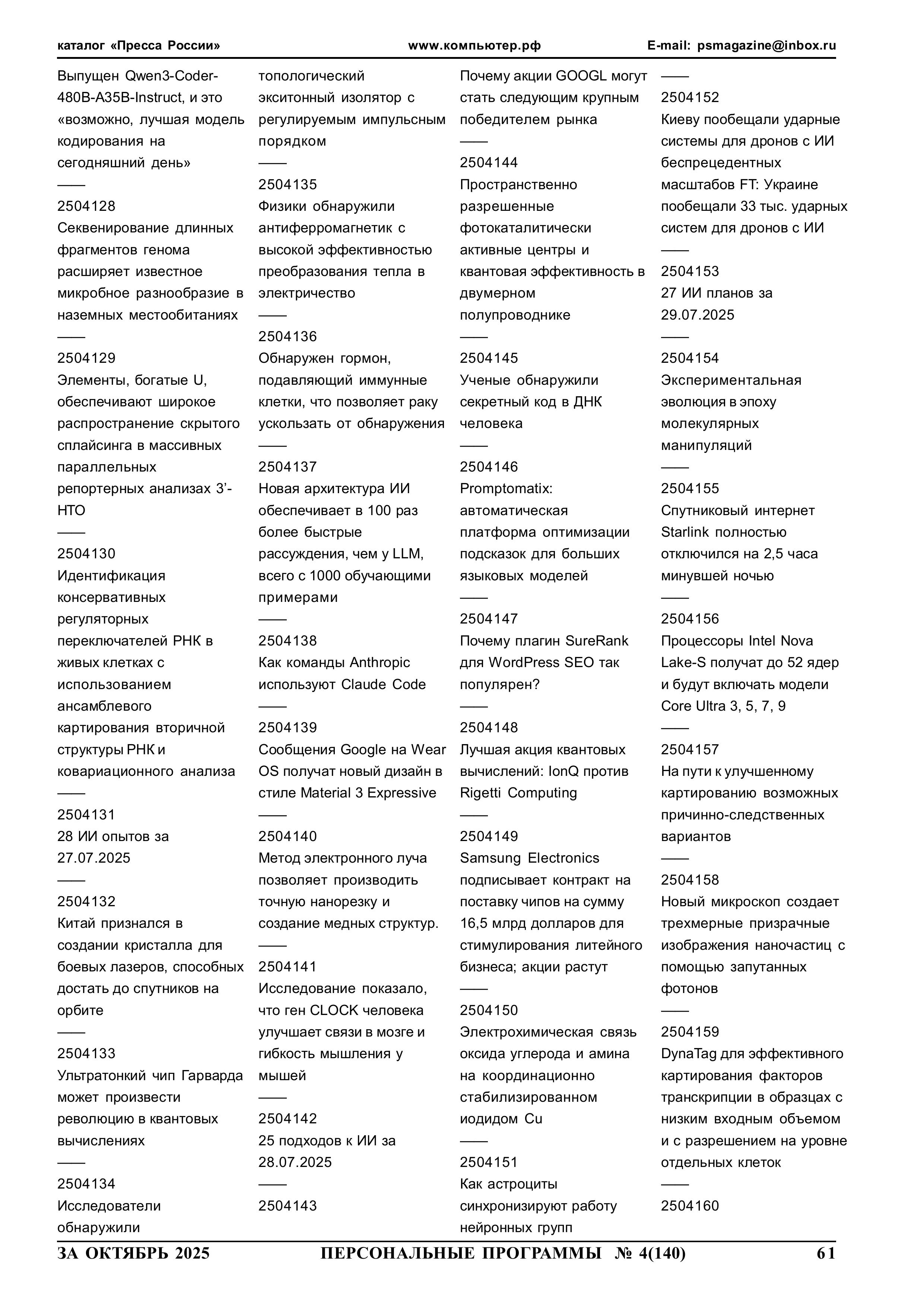 254061 yyNppp [ггNстр] Еженедельный журнал Персональные программы. Компьютер на флешке 2025-07-23
