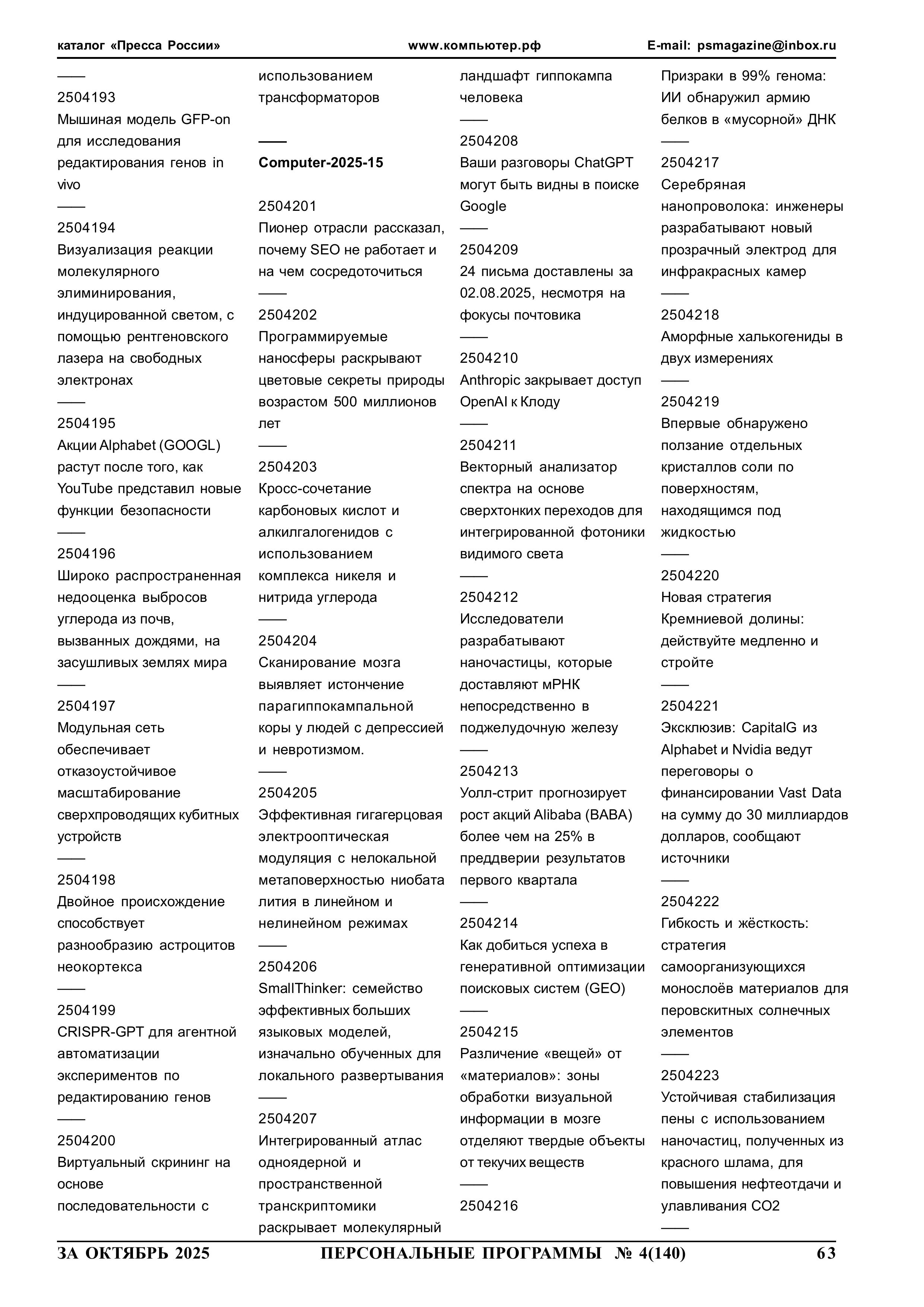 254063 yyNppp [ггNстр] Еженедельный журнал Персональные программы. Компьютер на флешке 2025-07-30