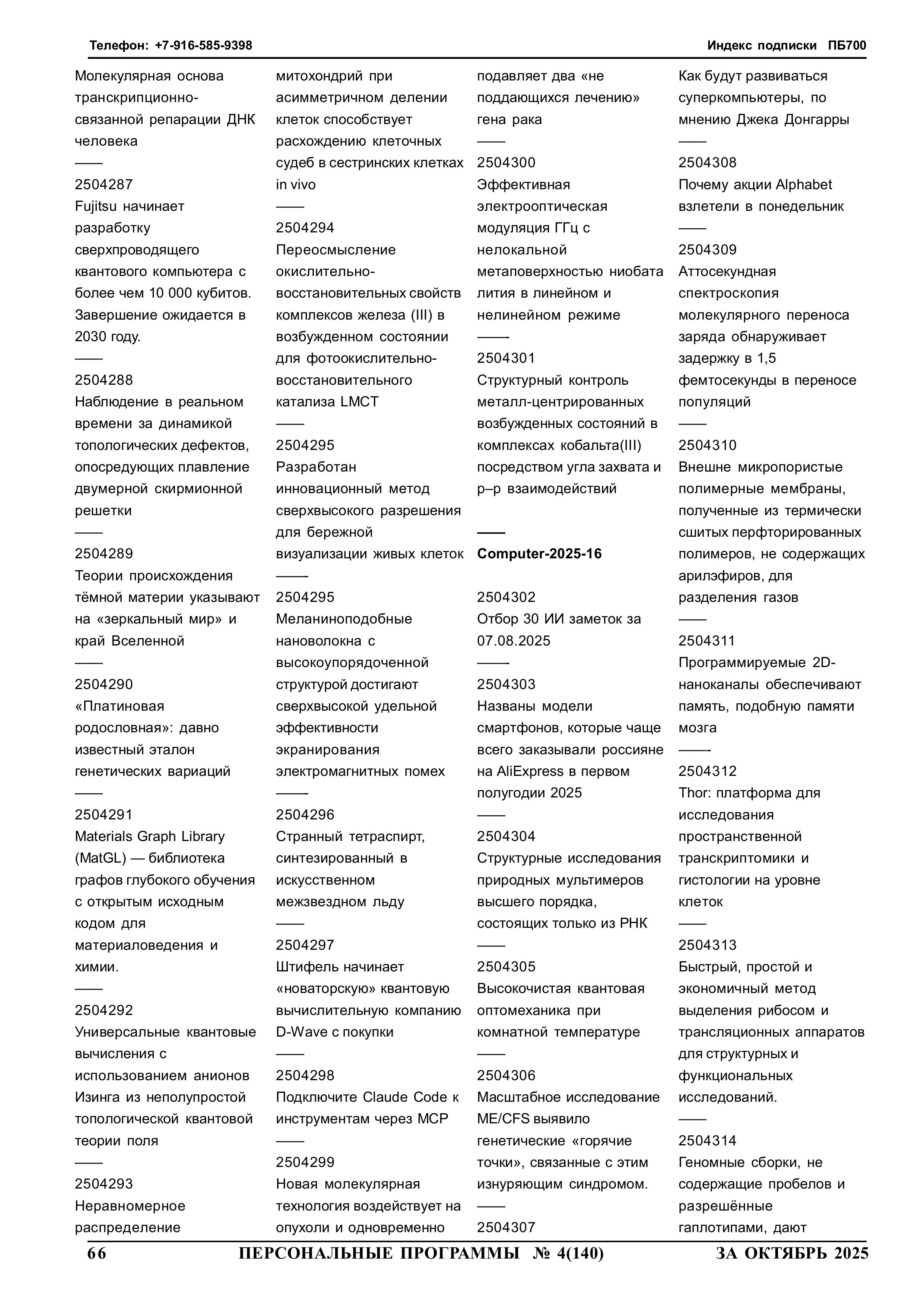 254066 yyNppp [ггNстр] Еженедельный журнал Персональные программы. Компьютер на флешке 2025-08-06