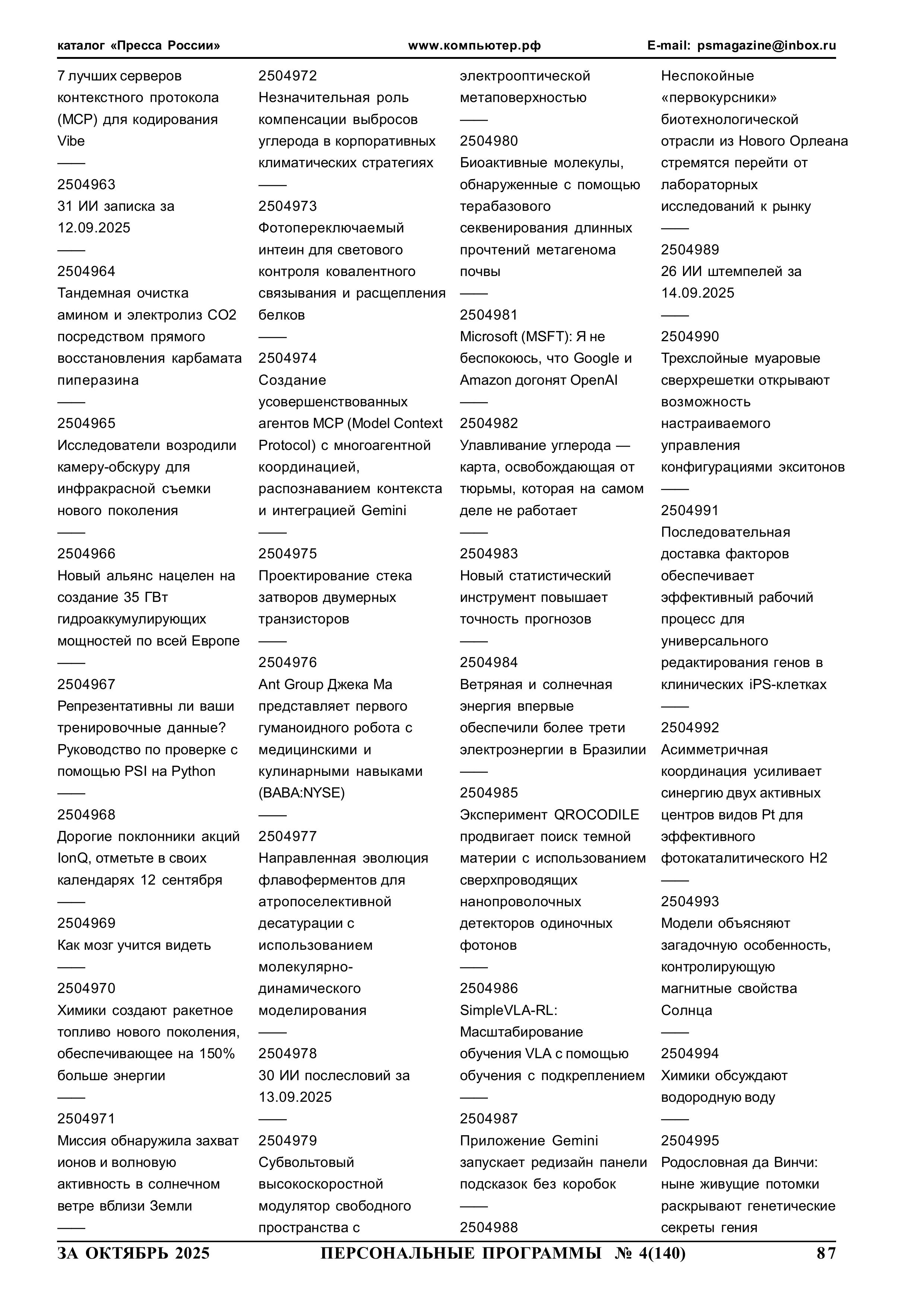 254087 yyNppp [ггNстр] Еженедельный журнал Персональные программы. Компьютер на флешке 2025-09-17