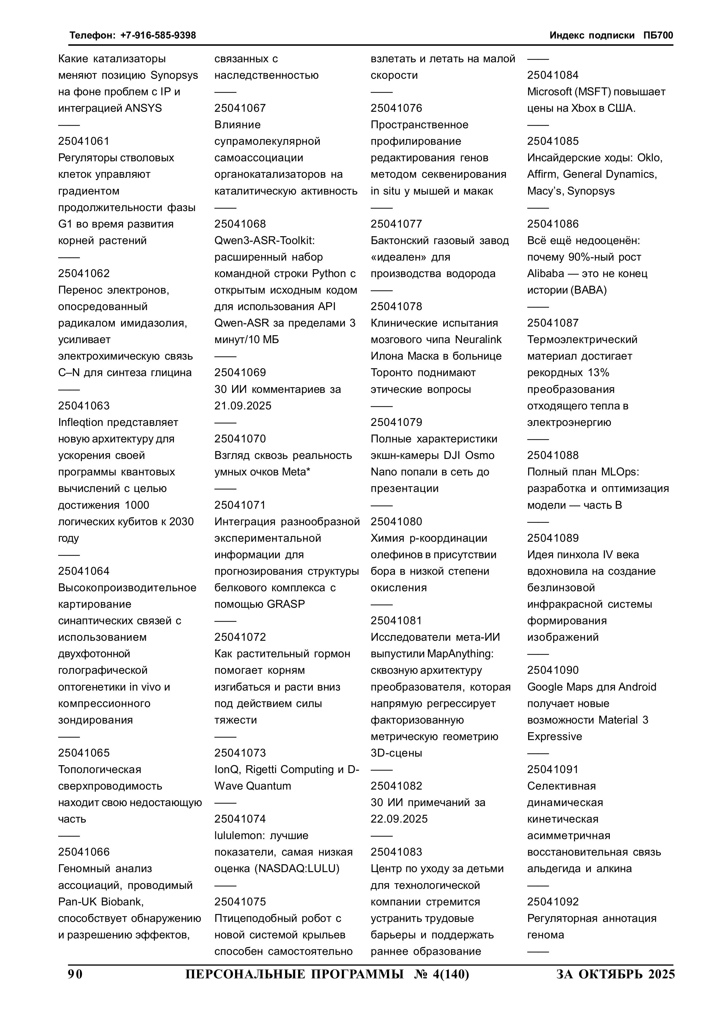 254090 yyNppp [ггNстр] Еженедельный журнал Персональные программы. Компьютер на флешке 2025-09-24