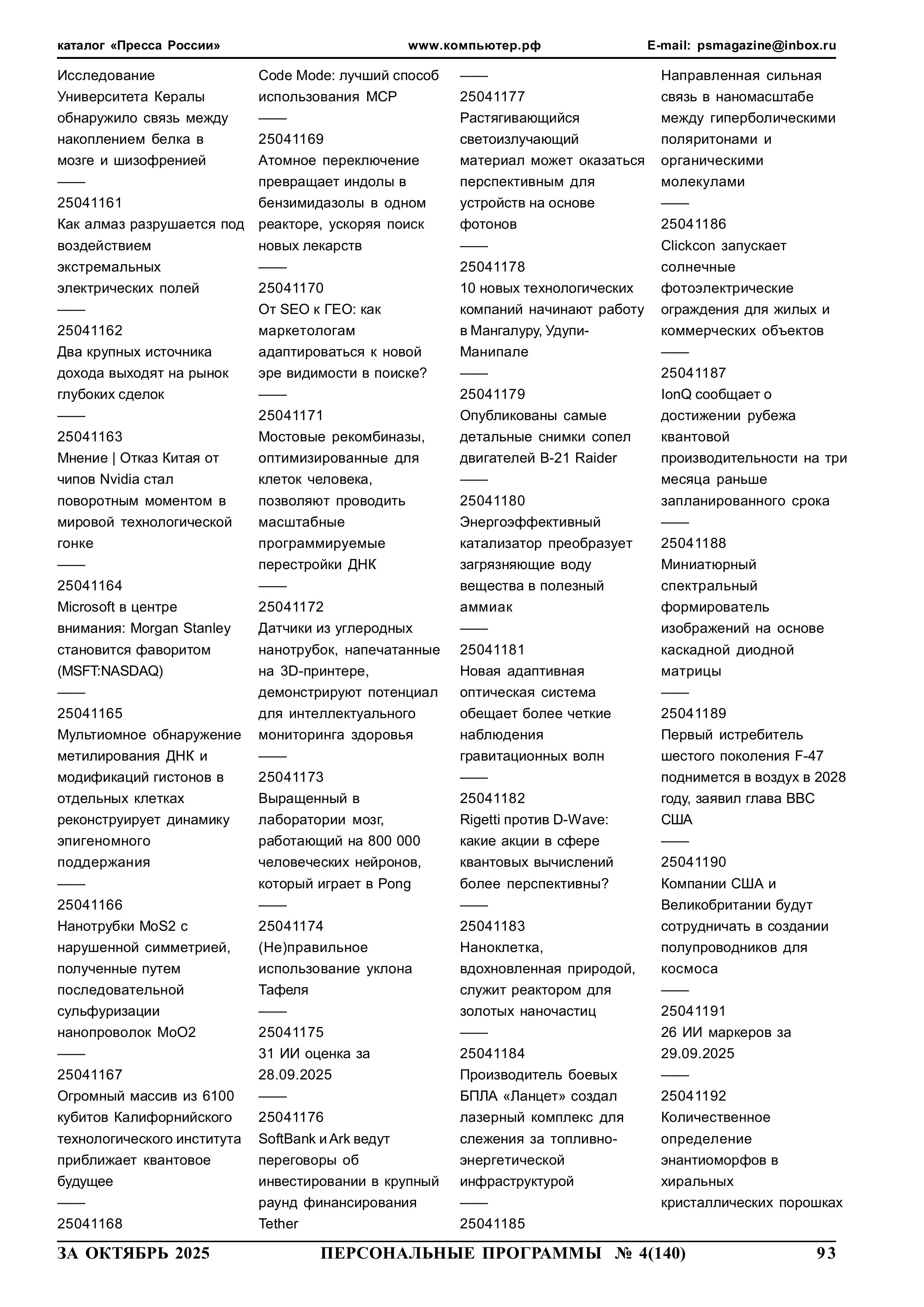 254093 yyNppp [ггNстр] Еженедельный журнал Персональные программы. Компьютер на флешке 2025-10-01