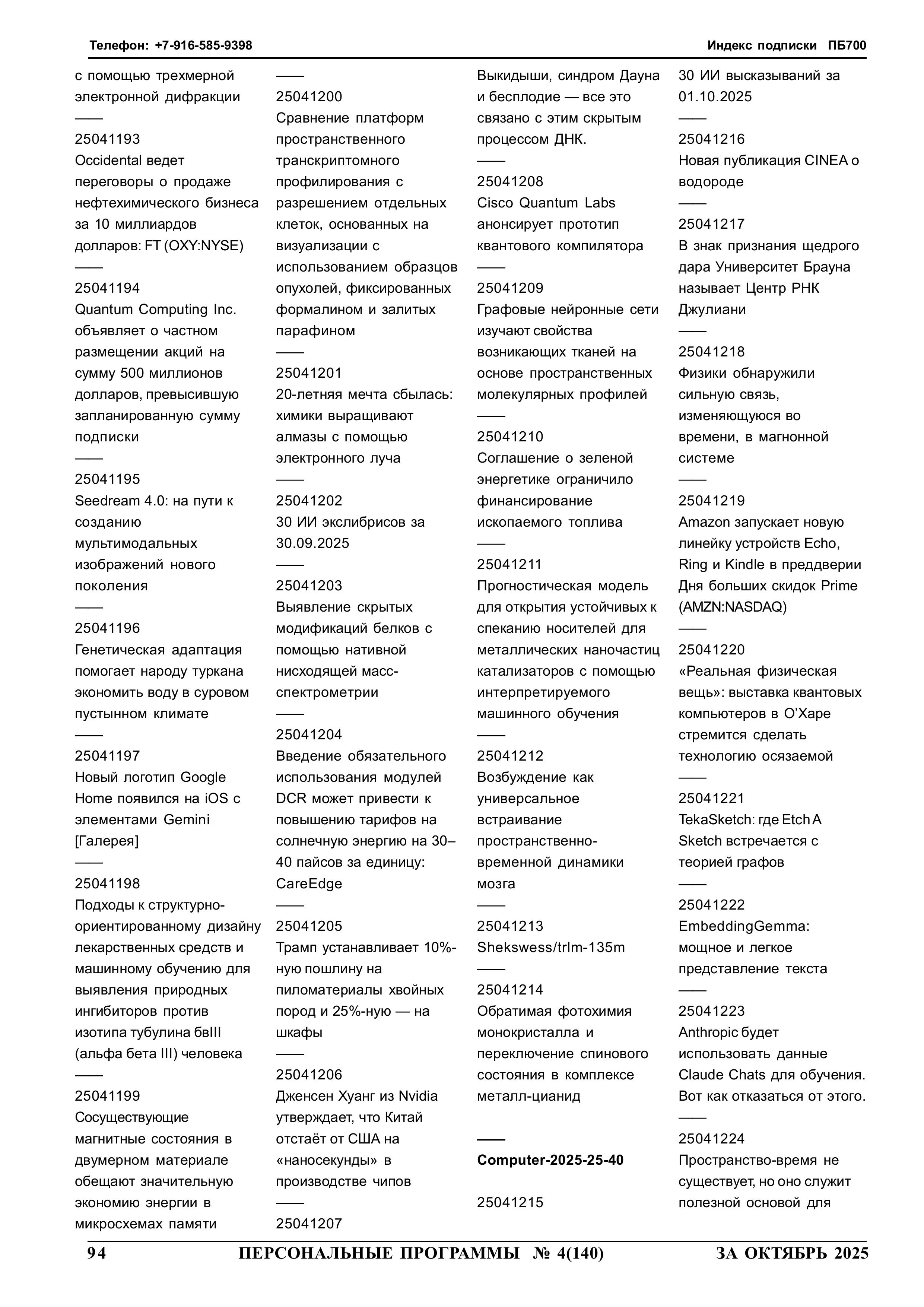 254094 yyNppp [ггNстр] Еженедельный журнал Персональные программы. Компьютер на флешке 2025-10-08