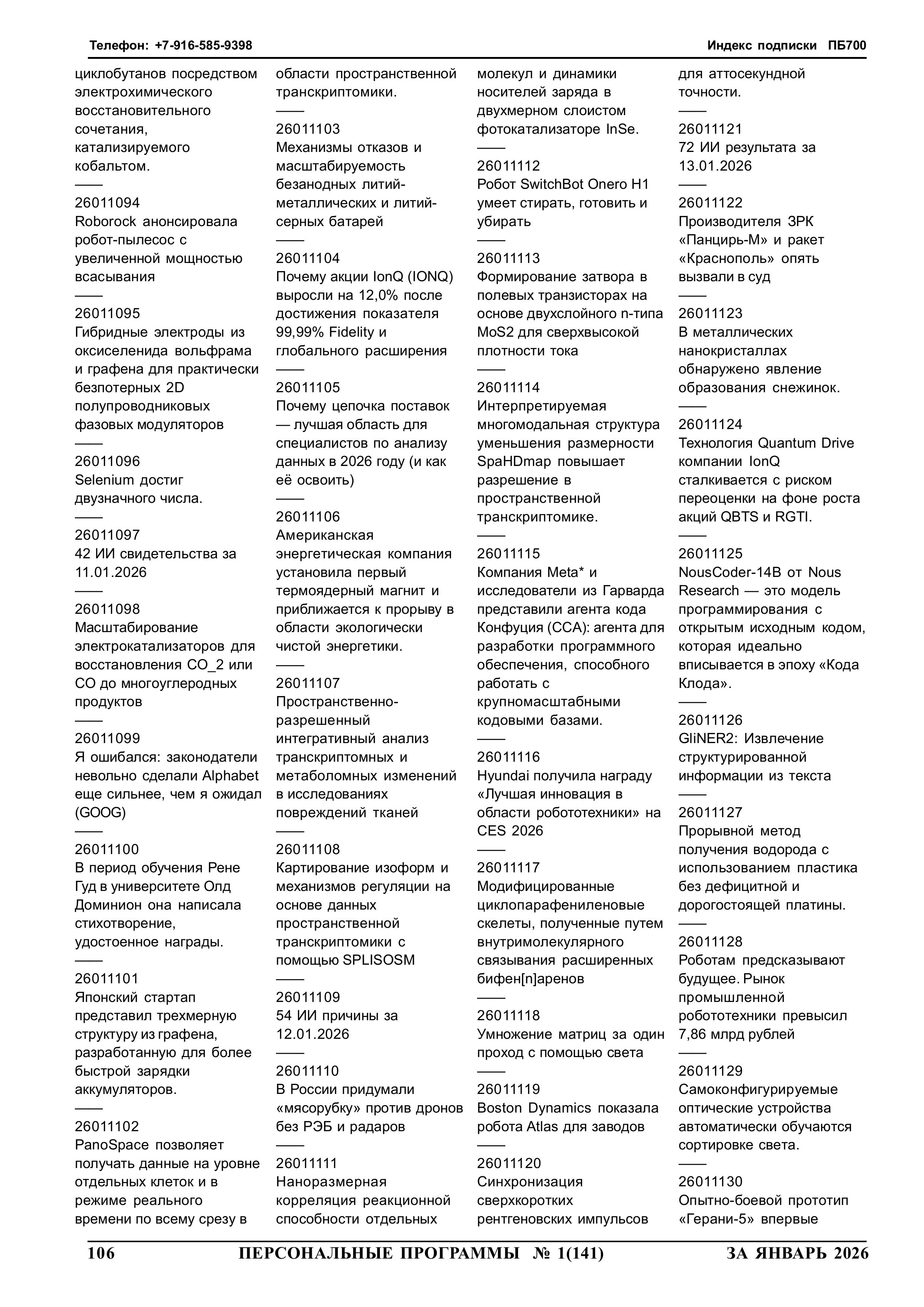 261106 yyNppp [ггNстр] Еженедельный журнал Персональные программы. Компьютер на флешке 2026-01-14